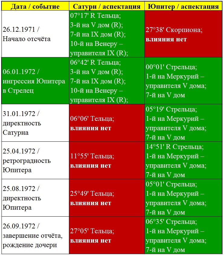 Вывод: если даже пренебречь лакуной Юпитера первого этапа, с 26 декабря 1971 года по 06 января 1972 года, то лакуна Сатурна с 31 января по 26 сентября 1972 года, в течение восьми (!) месяцев – серьёзное основание в целесообразности обращения в ДНК-центр на предмет установления отцовства Владимира Семёновича…