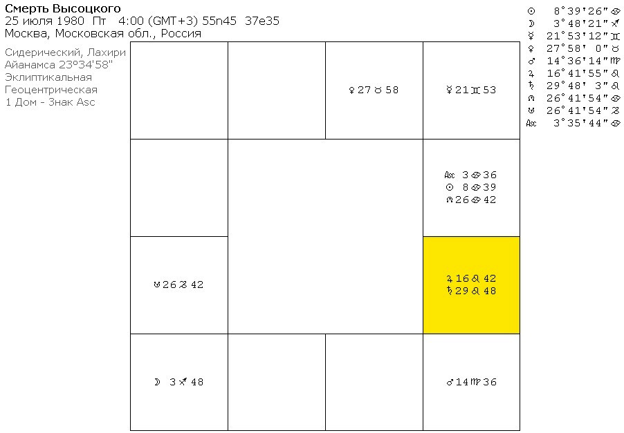 Гороскоп смерти Высоцкого в южноиндийском стиле