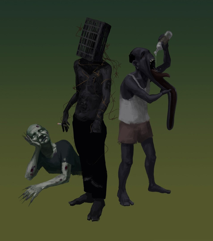 – Ииои-оу-ы-аему-аау! – промычало чудовище. Челюсть существа с черными пеньками зубов спадала почти на живот, глаза казались атрофированными – в них копошились мелкие личинки – а руки и ноги были тонкими и кривыми. Довершала картину огромная дыра в пол-черепа, обнажавшая гниющий, засиженный мухами мозг.