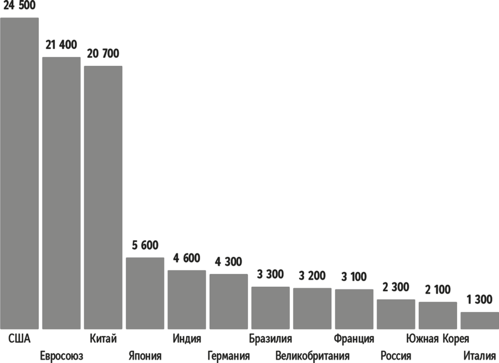 Рис 2. Внутренний валовой продукт в отдельных странах и регионах в 2030 г., млрд $.