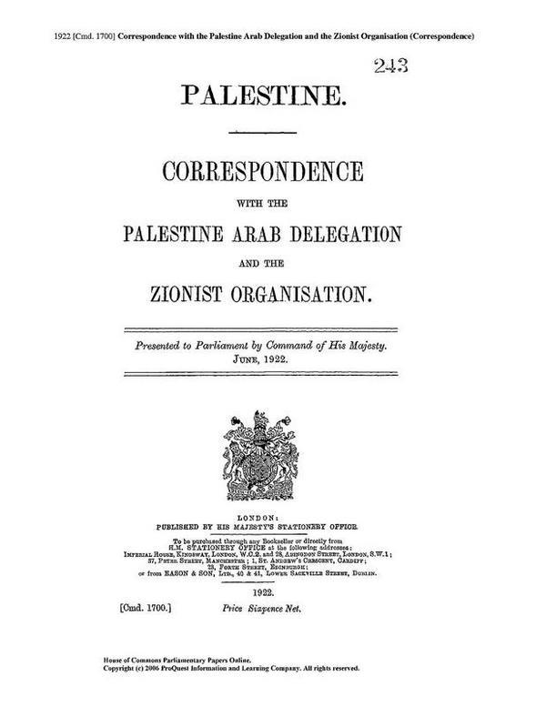 «Белая книга» 1922 года, с одной стороны, подтверждала приверженность британского правительства «Декларации Бальфура», а с другой – подчеркивала, что палестинские арабы имеют полное право на проживание в родных местах и их права не могут быть ущемлены. «Превращение Палестины в еврейскую страну в такой мере, в какой Англия является английской, невозможно», – писал Черчилль и уточнял, что «Декларация Бальфура» предусматривала «не провозглашение всей Палестины еврейским национальным очагом, а только создание такого очага на территории Палестины».