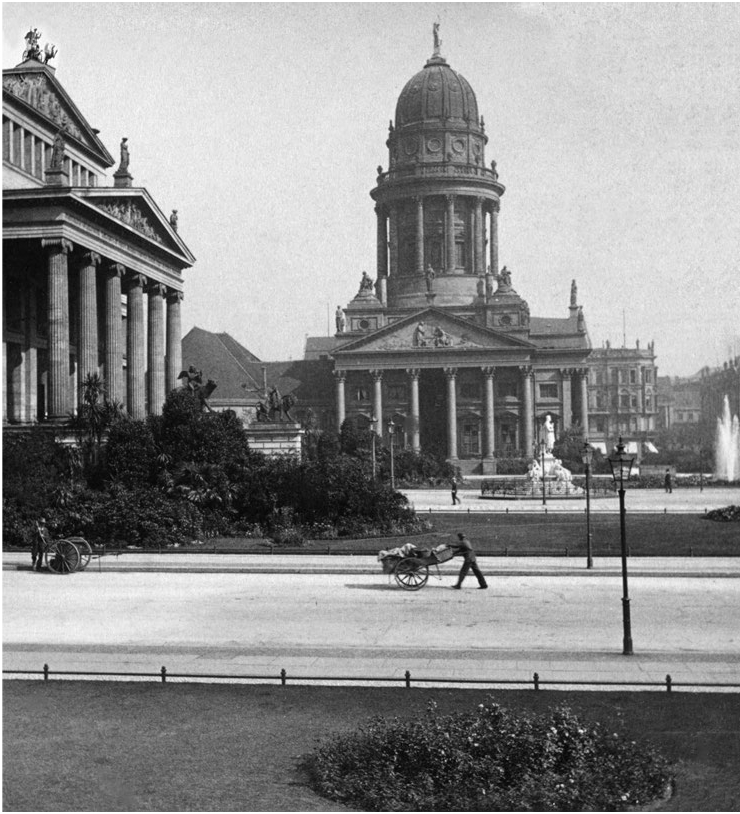 Памятник Шиллеру на фоне Французского собора, слева – Королевский театр. Берлин, Шиллерплац. 1910-е