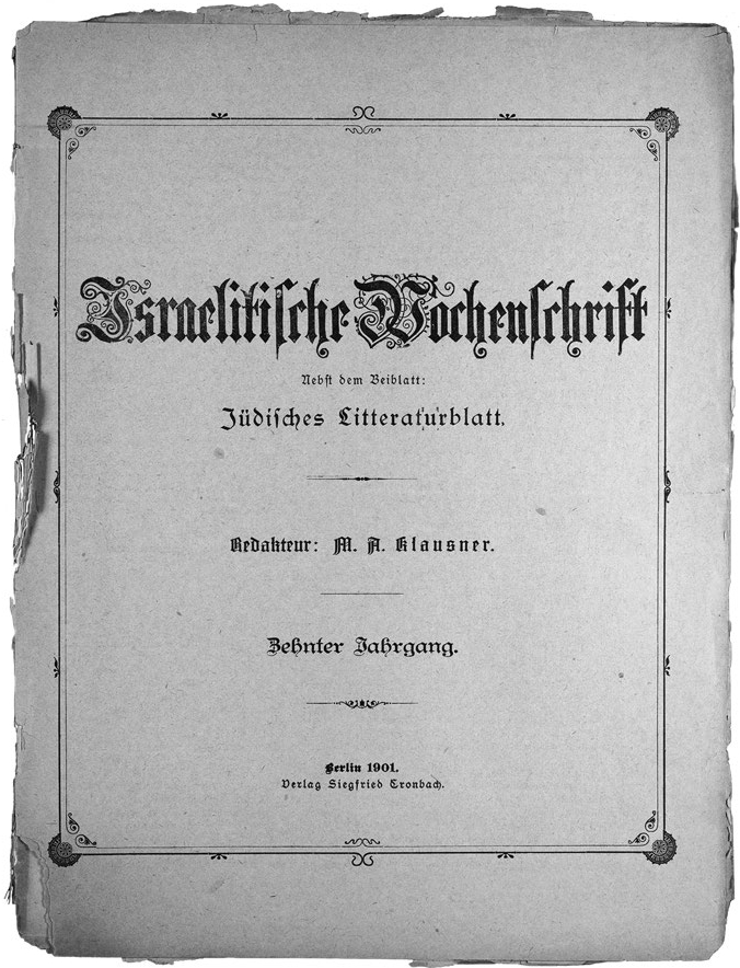 Обложка журнала “Israelitische Wochenschrift”. Выпуск от 25 января 1901