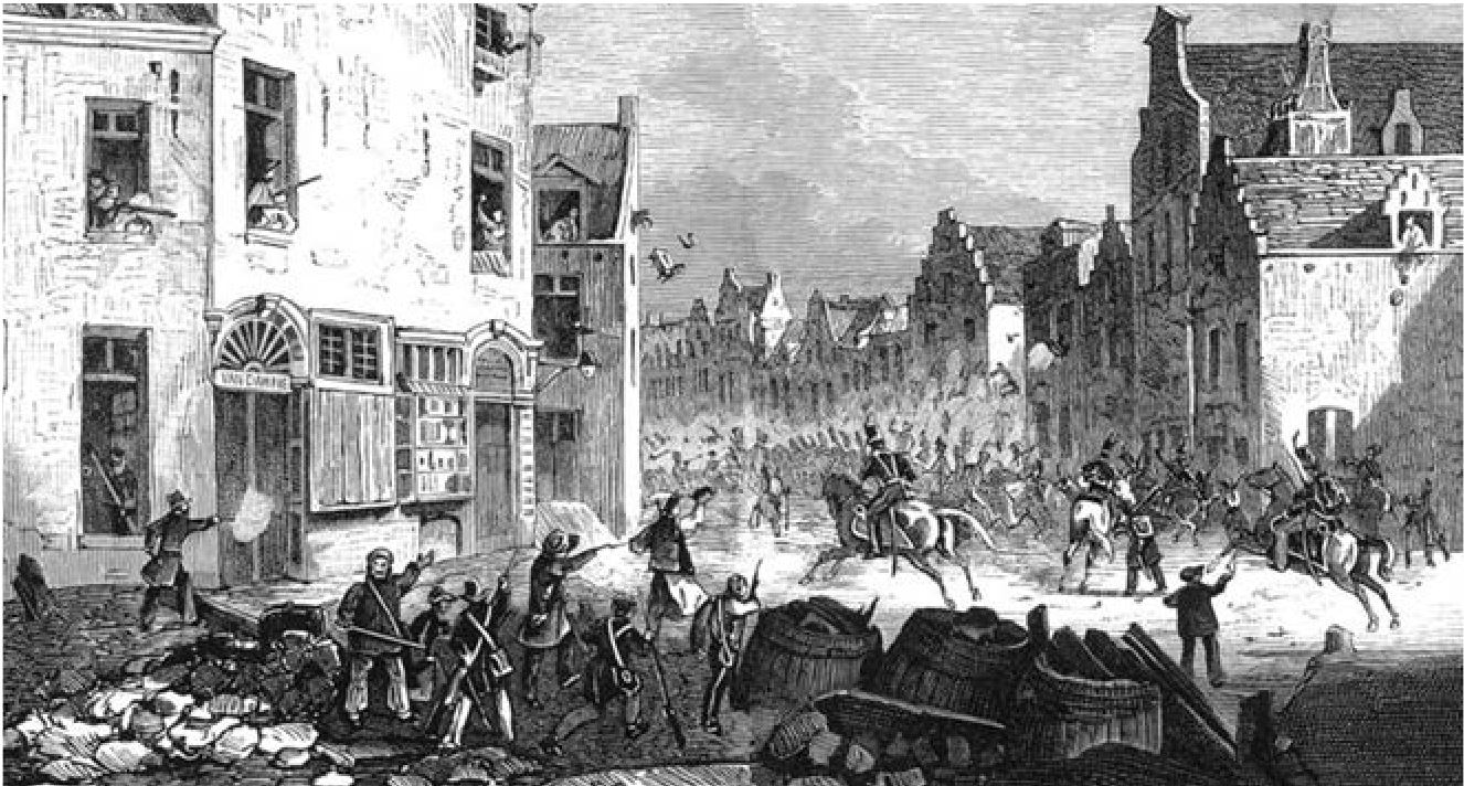 Брюссель в сентябре 1830 г. Литография Антуана Девасме-Плетинкса