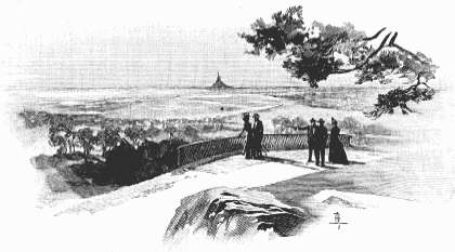 Среди этой желтой пустыни, еще пропитанной спадавшим приливом, километрах в двенадцати-пятнадцати от берега, вырисовывались величественные очертания остроконечной горы – причудливой пирамиды, увенчанной собором.