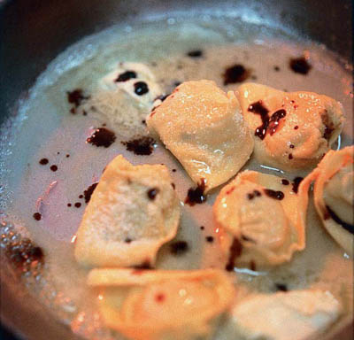 Sometimes we make agnolotti with Parmesan, tossed in a little butter, with a couple of drops of balsamic vinegar added; and I love to serve balsamic vinegar with pork belly, or with calves’ liver, in a simple sauce made with sultanas and nuts (see page 484). A little drop is amazing with plainly cooked wild salmon, and balsamic vinegar and strawberries is another famous combination.