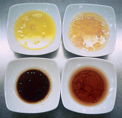 There is no real Italian equivalent for the word ‘vinaigrette’ because traditionally, when you went into a restaurant and ordered a salad, they would bring the oil and vinegar, and some salt to the table – or if you wanted oil and lemon, you would just ask for olio e limone. Nowadays, if a salad comes ready-dressed, we just borrow the French term. Or we might use the word condimento, which can mean any kind of seasoning or flavouring as well as a dressing; or even aspretto – from aspro meaning sour. We usually use this term when we create a dressing in which there is an element that we have made ourselves – such as our saffron ‘vinaigrette’, which we would call Aspretto di zafferano.