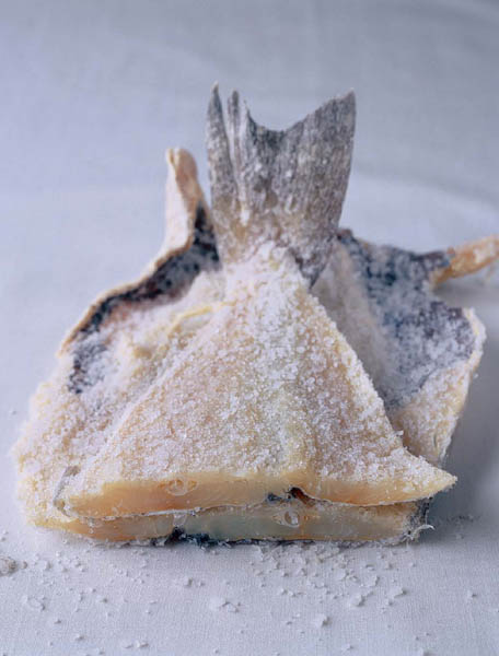 What we are talking about is natural sea or rock salt, very different from ‘table salt’, which is bleached and refined, often has chemicals added and has a harshly salty flavour. I always thought what a great job it would be to spend your days skimming off the perfect little crystals at some natural saltpan, somewhere wild and beautiful. This is the kind of salt you can pack around a piece of meat or fish for baking in the way that has been done for thousands of years. (Originally, you would have dug a pit in the ground, put in the fish or meat in its salt crust, covered it over and built a fire over the top.) As it cooks, the salt crust becomes rock hard, sealing in all the moisture and juices, and gently seasoning at the same time, but without making the cooked meat or fish taste ‘salty’.