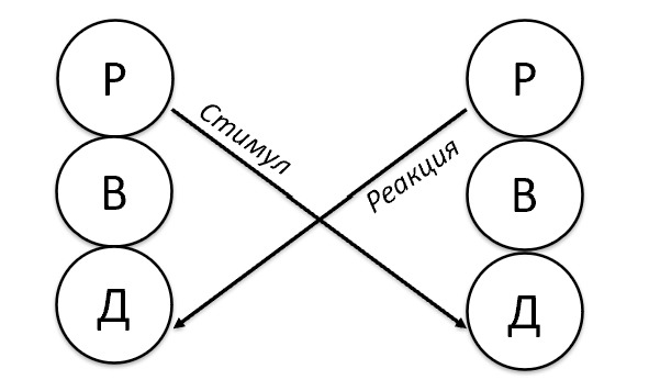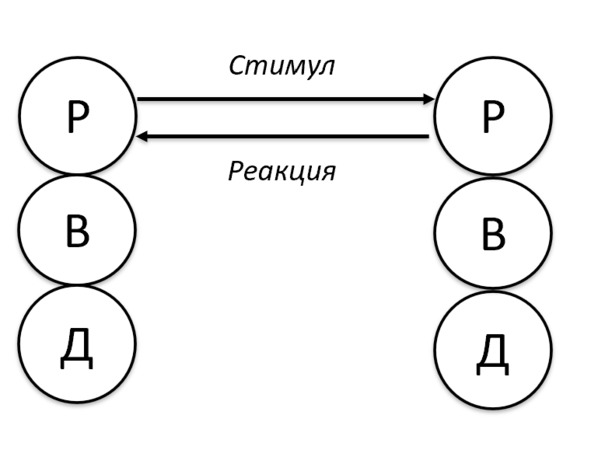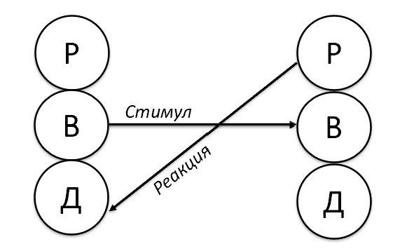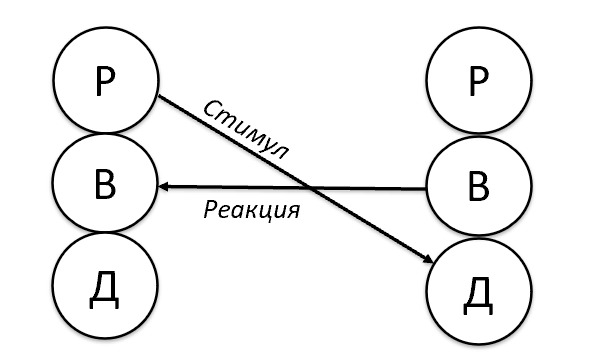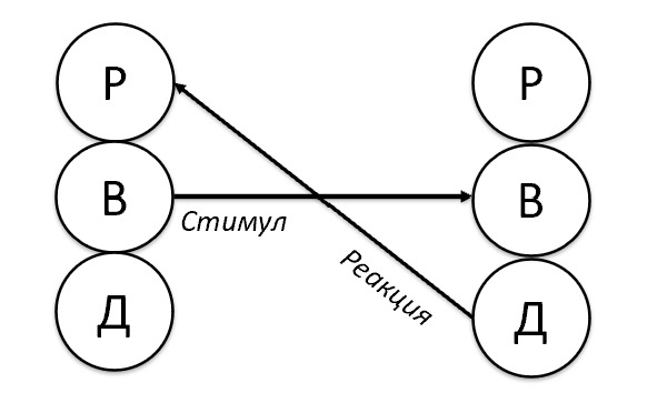 Тип 3: Реакция «Игнорирование Родителя» (Стимул Р→Д, Реакция В→В)