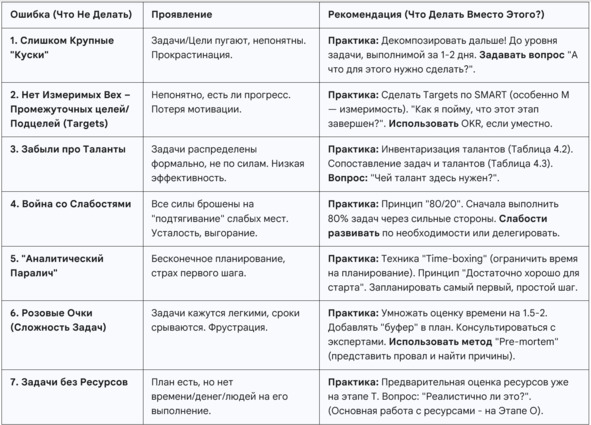 7. Частые Промахи: Типичные ошибки при разбивке целей и работе с талантами + как их избежать.