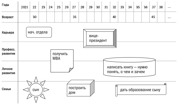 Что удивительно, читая препринт книги, даже серьезные топ-менеджеры, люди вроде бы успешные и развивающиеся, отмечали как новую для себя идею планирования жизни. Один из них показал свой ежедневник и его первую страницу – график года (когда конференции, когда отпуск и т. д.). «Вот в этих рамках я и живу».