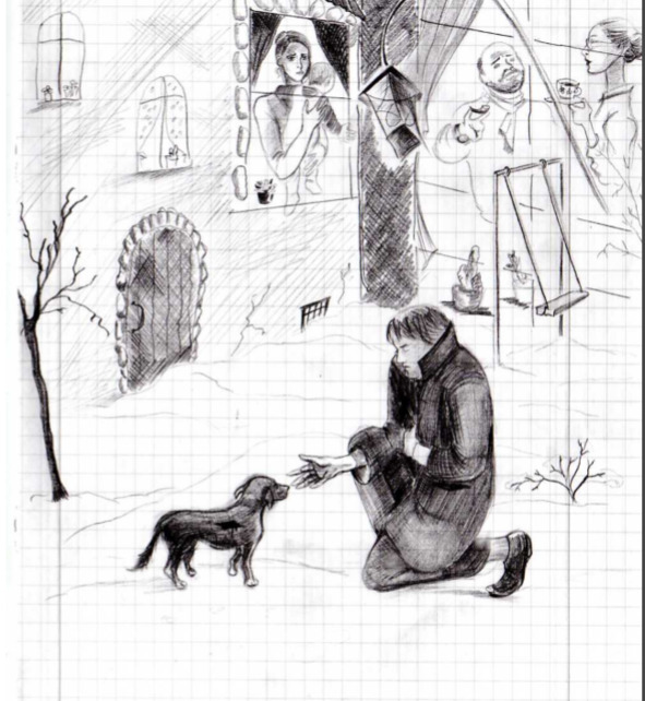 На улице его встретила пурга. Она обожгла его жутким морозом и колким снегом, превратив слезы в лед. Сердце тревожно забилось в предчувствии чего-то нехорошего. Было уже темно. Революционер посмотрел наверх, где еще горел свет в окне детской. Там оставалось все родное, все, что было дорого. Он вдруг понял, что ему некуда идти. Бывшая жена живет с другим мужчиной, и скоро у них будет общий ребенок. В этот момент к революционеру подошла бездомная псина. Она лизнула его руку и посмотрела на него печальным взглядом. Он почувствовал, что несчастное создание понимает его лучше многих людей.