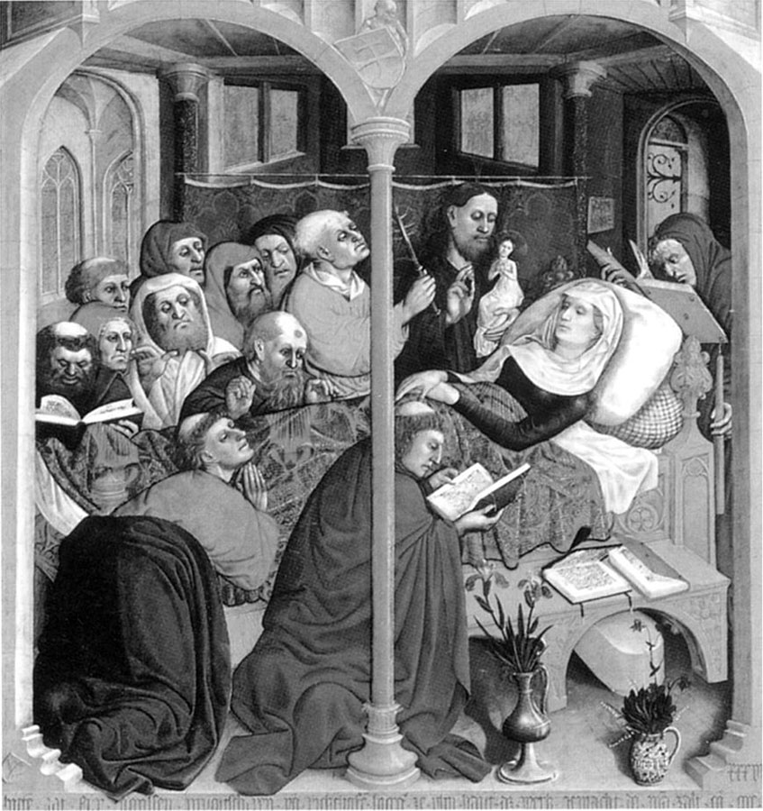 Рис. 10. Успение Марии Богоматери. Ганс Мульчер. Вурцахский алтарь. Якобы 1437 год. Рядом с Марией стоит Христос с маленькой фигуркой на руках. Взято из [927:1], с. 28, илл. 32.