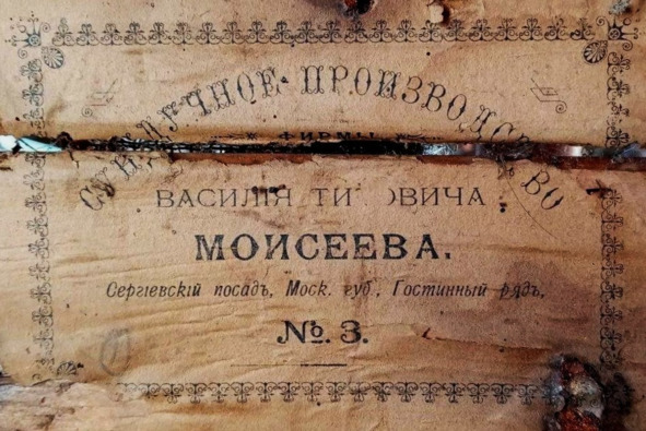 Рекламная этикетка сундучного заведения В.Т. Моисеева.