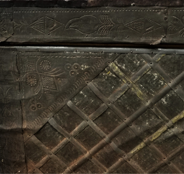 Сундук. Конец XIX – начало XX века, Средний Урал. Дерево, жесть, кожа, прорезь, гравировка, литье (ОНИ ГРМ).