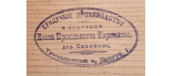 Клеймо сундучного заведения П. Я. Кокушкина.