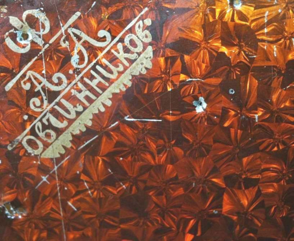 Заведение осн. в 1857 году (по Звереву – в 1839), ежегодно производилось изделий на 1200 руб. по заказу местных сундучников, 1 наемный мастер, работали 9 месяцев в году. По словам П. Н. Зверева, И. А. Овчинников первым начал использовать пробочные манеры для печатания узоров на железе. Эту технику он заимствовал у тагильских «подносников».