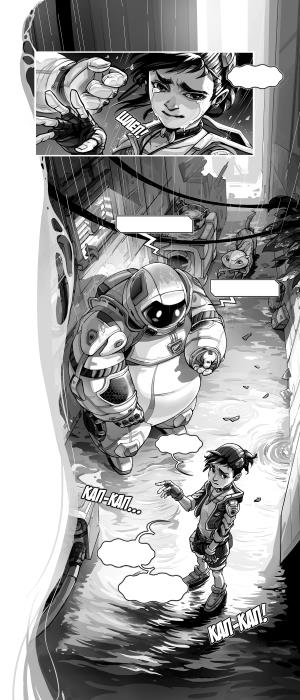 Неожиданно разразился ливень, накрыв город Металлолома дождевой завесой. В кромешной тьме, окутавшей притихший городок, Бестолковый Котенок молча брел вперед, словно зомби. Он чувствовал, как ярость переполняет его голову и тело, а гнев распирает изнутри, как резинового Кругляша. Под раскаты грома Му Энь шагал по топким разбитым улочкам и остановился только у станции на въезде в город. Там он присел на корточки посреди грязного переулка.