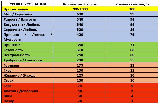 Отрицание тени и желание жить «по дарам» прямым и самым скорым образом опускает человека в низкие вибрации. Тень важно признавать, тень важно видеть: да, я такой(ая), я могу так и вот так. Но я вижу свои реакции, и я сам(а) выбираю, как мне поступать, что думать и что чувствовать. И тогда включается Дар, когда человек переходит на высоко вибрационные состояния сознания, стоящие выше Гордыни (подробнее о состояниях – смотрите ниже Шкалу осознанности Дэвида Хокинса).