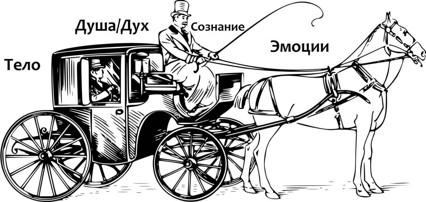 Если кучер (сознание) не думает или не знает, что лошадьми (эмоциями) нужно учиться управлять, то далеко не получится уехать. Ежели кучер (сознание) не слышит, не слушает пассажира (душу), а действует так, как хочет, то он может сильно расстроиться, когда приедет не туда. Важно понимать, что экипаж направляется в ту сторону, куда нужно пассажиру (душе), а не извозчику (сознанию). Кучер (сознание) должен научиться действовать слаженно, сообща, как единый организм, и не бежать впереди «паровоза».