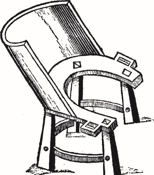 ИСПОЛЬЗОВАНИЕ АКУШЕРСКОГО СТУЛА Гравюра из книги «Розовый сад для беременной женщины» Рослина (XVI век)