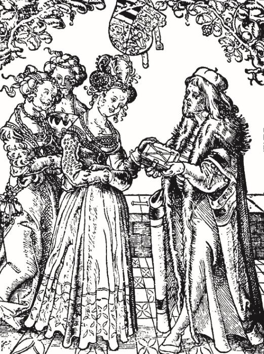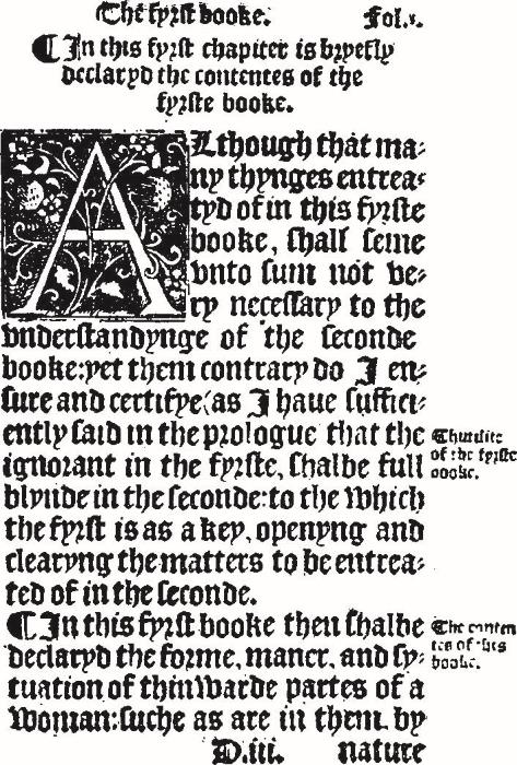 На этой иллюстрации из изданной в 1513 году книги «Сад роз» показано, как автор почтительно преподносит труд по акушерству своей покровительнице. Это была первая за четырнадцать веков европейская книга по родовспоможению. Она была переведена на множество языков, а кроме того, появилась масса плагиата. Английское издание вышло в 1555 году под названием «Рождение человека»