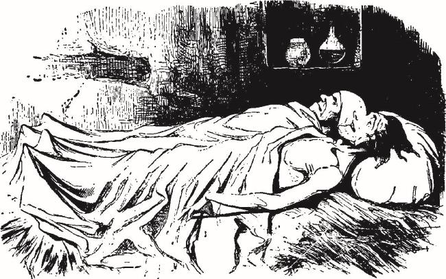 ПАЦИЕНТ В КРОВАТИ С ТРУПОМ. ГРАВЮРА ДОМЬЕ