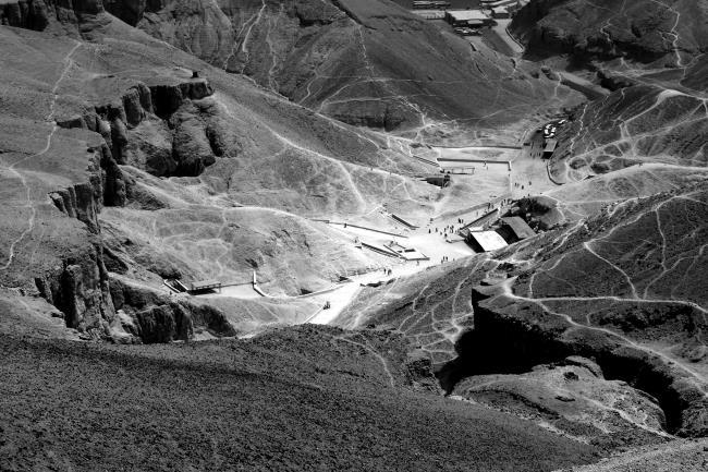 Мы достигли более широкого места, представляющего собой открытую круглую площадку, похожую на амфитеатр, и прошли узким ступенчатым проходом, поднимающимся на десять футов. Казалось, что он был вырублен в скалах. Старый проход, по-видимому, шел из Мемнониума под холмами и, возможно, начинался на другом склоне в пещере, куда я заходил. Через этот новый проход мы въехали в Бибан-эль-Молук, что означает «Врата царей», или «Царский двор», – место, служившее для погребения фиванских фараонов»[11].