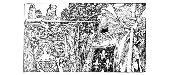 И вот, спустя некоторое время, у Утера Пендрагона и королевы Игрейны родился сын. Он был очень красив, высок и крепок. Ребенок лежал в пеленках, в своей колыбели, украшенной золотом и ультрамарином, не догадываясь о том, что случится в ближайшем будущем. Но дух пророчества коснулся Мерлина, открывая ему грядущее. Влекомый видением, чародей пришел к Утеру Пендрагону и сказал следующие слова:
