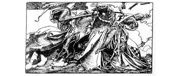 Когда герольд снова затрубил в горн, каждый рыцарь с готовностью обнажил свое оружие, от чего воздух вновь вспыхнул блеском клинков. Второй сигнал горна бросил в бой отряды, устремившиеся друг на друга, и каждый выискивал себе достойного противника, чтобы сойтись с ним в поединке. Ярость боя охватила сражающихся, так что и не сразу разберешь, настоящая ли на поле битва или все же благородный турнир.