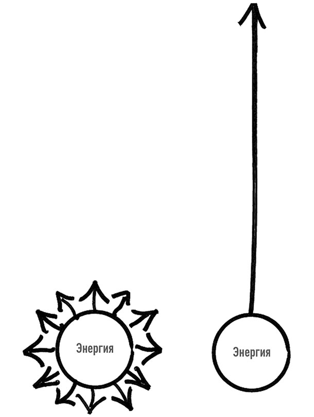 Как-то раз я работал с одним очень преданным своему делу менеджером. Он еще в детстве полюбил технологии, и очень скоро его знания и страсть к технике начали окупаться. Он был готов развивать свой успех и продолжил обучение в этой области с огромным энтузиазмом. Когда мы познакомились, он буквально излучал энергию. Ему хотелось всё попробовать и испытать. Новые интересы возникали у него каждый день, если не каждый час. Но при этом он терял способность видеть среди множества возможностей действительно важные. Для него имело значение всё. В результате он только больше распылялся и делал по крошечному шагу вперед в десятках выбранных направлений. Он работал слишком много и слишком неэффективно. Его-то я и изобразил в левой графе таблицы, расположенной выше.