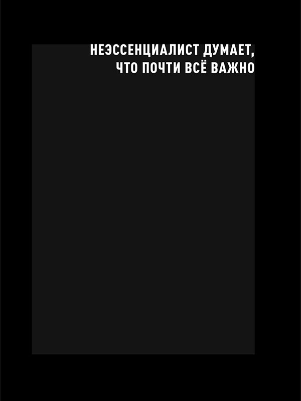 Многие способные люди не переходят на следующий уровень, потому что не могут избавиться от веры в то, что всё важно. Но эссенциалист отличает по-настоящему значимое от остального. Чтобы натренировать это умение эссенциалиста, нужно начать с простого, а затем, когда оно станет нашей второй натурой в повседневных делах, применить его к более широким и важным областям личной и профессиональной жизни. Чтобы научиться этому, необходимо сильно изменить свои мысли. Но это возможно.