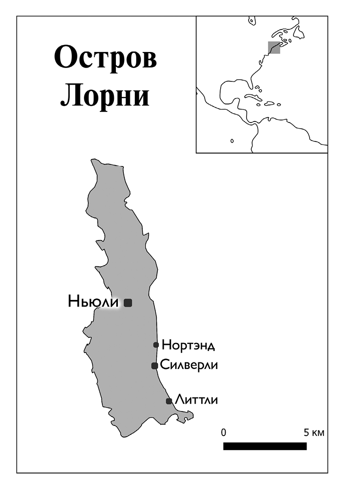 Действие книги происходит на вымышленном острове Лорни у Восточного побережья США. Хотя в действительности его не существует, я привожу здесь приблизительную карту.