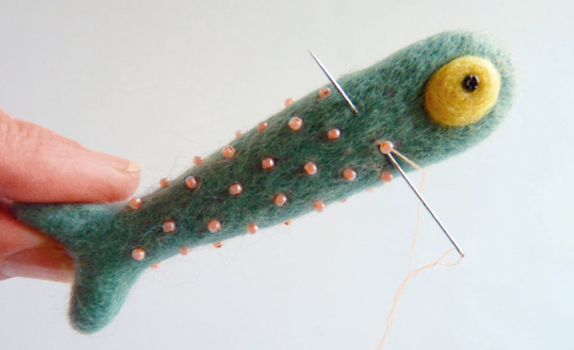 Seed beads (or any other kind of bead) are another great way of decorating a project. Use invisible thread or one that closely matches the colour of the bead. Make sure you have a long length of thread, so that you don’t have to keep rethreading.