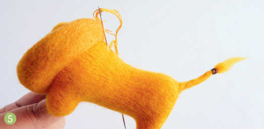 2 Make four to five stitches where you want the nose to be. Don’t pull the thread too tight in the felt or the stitches will be distorted. They should just nestle snugly together.