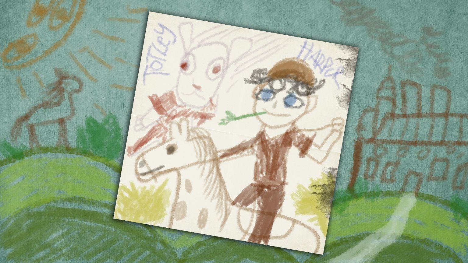 “Харпер и Тотли веселятся на лугу вместе с лошадками”.
