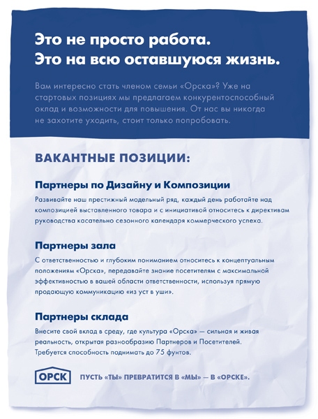 Эми обвела взглядом комнату. На стене висел большой плакат с надписью: «Усердный труд делает „Орск“ семьей, усердный труд – это свобода!» Эми не могла решить: то ли эта подделывающаяся под «Икею» высокопарная фальшивка в европейском стиле лишь слегка раздражает, или она откровенно оскорбительная. Нет ничего хуже магазина, прикидывающегося тем, чем он и не пахнет.