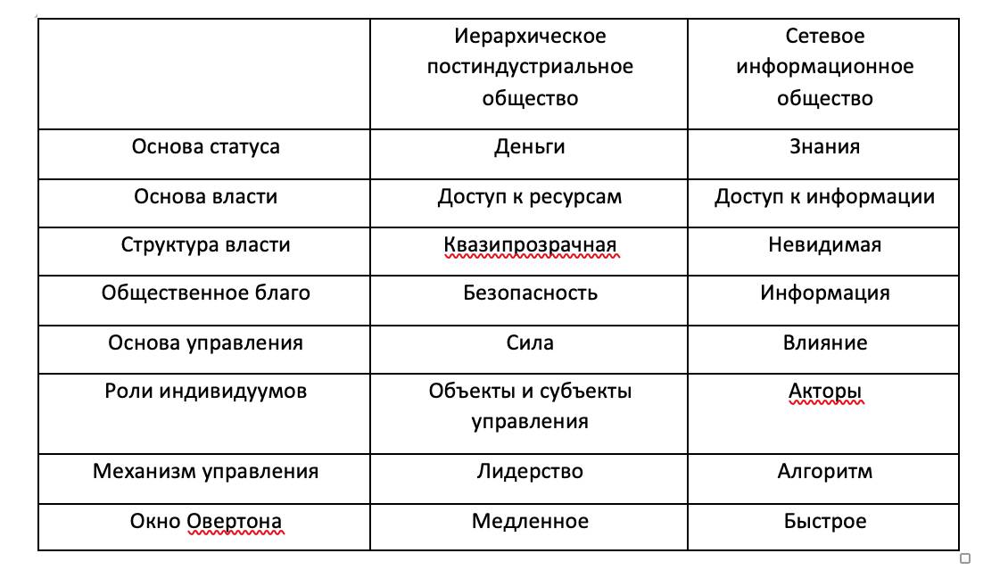 В сетевом информационном обществе картина мира радиально меняется. Информация становится главным ресурсом и способность превращать ее в знания в совокупности с возможностью широкого доступа к информационным источникам формируют статус человека.