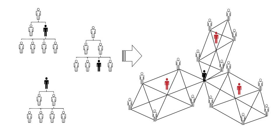Что же в конечном итоге происходит с индивидуумом при переходе от иерархической социально-экономической системы к сетевой? В иерархической системе он является членом одновременно нескольких иерархий, и его позиции в каждой из них могут различаться. Главенствуя в семье, он может стоять в самом низу служебной лестницы и занимать при этом промежуточное положение, скажем, в иерархии общества спортивной рыбалки.