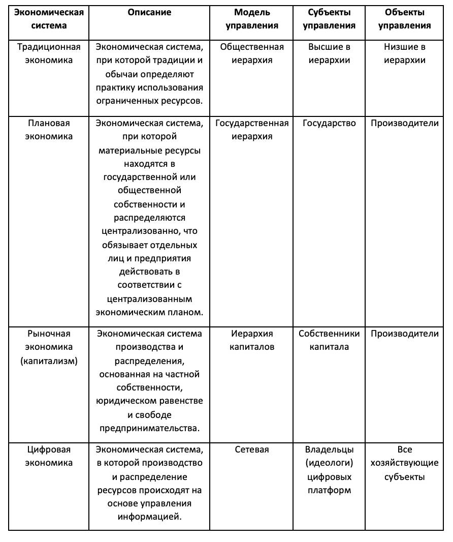 – как устроена система управления ресурсами в цифровой экономике;