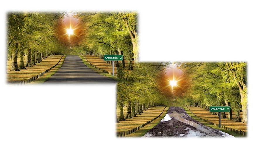 Цель организации – сияющее впереди солнце, стратегия – ведущая к нему дорога, политика – окружающий дорогу заборчик, представляющий систему ограничений, которые компания накладывает сама на себя (не заниматься промышленным шпионажем, не нарушать законы, не угнетать сотрудников и т. д.). Качество же дорожного покрытия (а именно этим отличаются изображения в правой и левой частях рисунка 2) символизирует систему бизнес-процессов организации. Как бы хорошо не была сформулирована цель, какой бы короткой не была дорога к ней, при отсутствии нормального асфальта цель может оказаться недостижимой. Прозрачность бизнес-процессов и качество их исполнения говорят о том, насколько хорошо организация управляется. Мы еще не раз будем обсуждать этот аспект в различных главах книги.