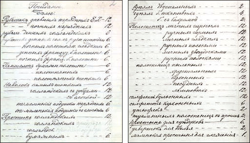 Список приданого графини Е. Н. Хвостовой, составленный при заключении брака с графом К. В. Пащенко-Разводовским. 1894 г.[124]