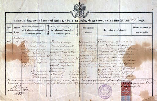 Выпись из метрической книги Христорождественской церкви г. Алатыря о совершении 16 февраля 1918 г. брака между крестьянином с. Иваньково Иваном Ивановичем Рыбаковым, православным, первым браком, и учительницей Иваньковского 2-го училища Ольгой Николаевной Николаевой священниками Александром Лебяжьевым и Евгением Люстровым, дьяконом Петром Дмитриевым при поручителях по жениху – крестьянине с. Сурский Майдан Алатырского уезда Сергее Васильевиче Пудовкине и крестьянине с. Ждамирово Константине Ивановиче Лезине; по невесте – крестьянине с. Сурский Майдан Алатырского уезда Василие Назаровиче Пудовкине и мещанине г. Алатыря Якове Яковлевиче Александрове[128]