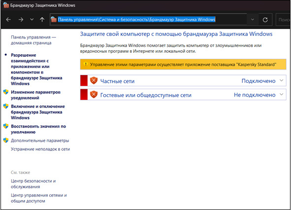 Также используйте межсетевой экран («Брандмауэр Защитника Windows», он же Firewall) – обычно сразу настроен в большинстве операционных систем компьютеров и роутеров для фильтрации ненужных и нежелательных сетевых пакетов, разграничения доступа программ к Интернету. Но он может быть отключён, передав свои задачи антивирусной программе. На рисунке 11 представлен путь до «Брандмауэра» из «Панели управления» в ОС «Windows». Точечно настраивать его могут только опытные специалисты, поэтому, оставляйте его с настройками по умолчанию.