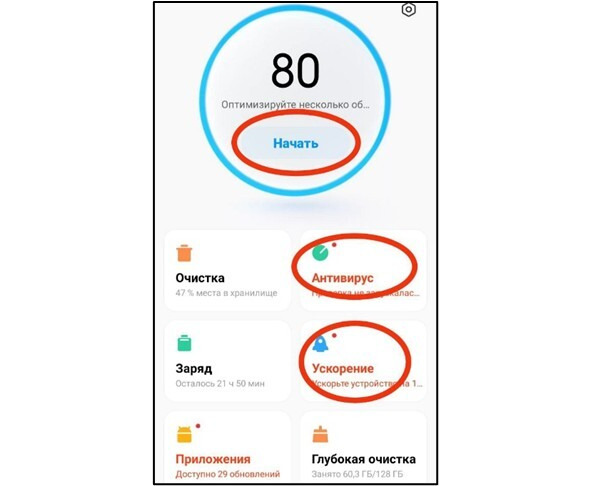 Рисунок 13 – «Антивирус» и очистка устройства