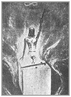 Страдания и внутренняя пустота, неизбежно следующие из подобного отрицания, дойдя до апогея, пробуждают в ученике страшную жажду чистого, незапятнанного, совершенного начала, как и неодолимую потребность утолить эту жажду. Так происходит переход к масти Чаш.