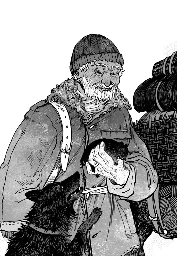 Старик не торопился. На его лице видна была озабоченность. Он изредка останавливался, заглядывая в корзину, сплетённую из прутьев и притороченную поверх вьюка. Тогда к нему подходила Бойка. Вытягивая голову, она прислушивалась.