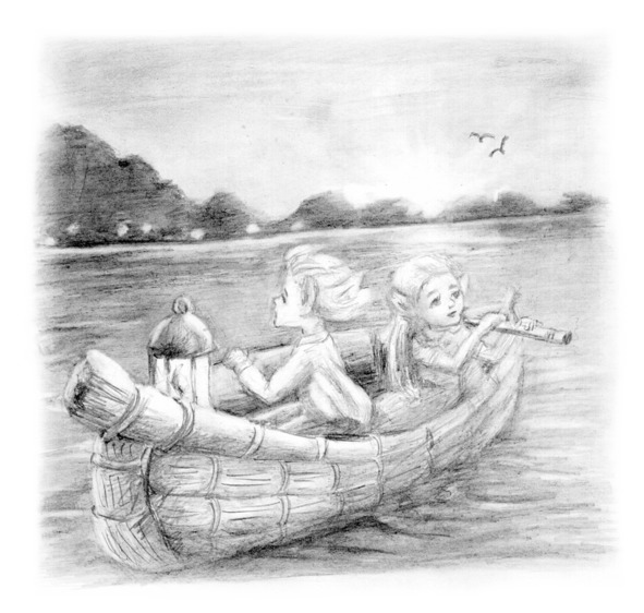 Тёплая глубокая ночь окутывала своим бархатным одеялом застывшие в темноте деревья, низко склонившиеся над зеркальной гладью реки. Мириады ярких звёзд отражались в ней, рождая чувство лёгкого и непринуждённого полёта. Лишь белая Дева-Луна нарушала эту безмятежность, забавляясь своим отражениям в водной ряби сотнями маленькими лунных зайчиков. Рыбы, несущие лодочку с маленькими дрёмами, менялись стая за стаей. Судёнышко монотонно раскачивалось, навевая сон своим юным пассажирам.