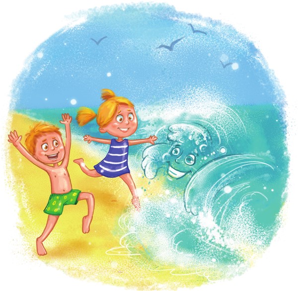 Нас зовёт морской прибойСине-бело-голубой.Защекоченный волной,Он хохочет, как живой, −И бурлит, и пенится,Крутится, как мельница,Но потом он стелетсяИ едва шевелится.А набравшись сил, прибойСнова очень озорной.Мы бежим к нему с тобой,Поиграть хотим с волной!