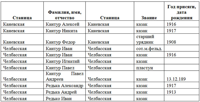 Советская власть пришла на Кубань в 1919–1920 года. Деды наши были аполитичны и не участвовали ни белом, ни в красном движение. Поэтому во время Гражданской войны на Кубани – их били, грабили и, даже убивали, и белые, и красные. В интернете есть пофамильные базы участников-военнослужащих Белой армии и пленённых Красной Армией. Они были пересмотрены и выяснилось, что в них нет фамилий Кантур и Редько. Это подтверждается рассказами родственников, что предки в политических событиях не участвовали, а жили в станицах дожидаясь своей участи.